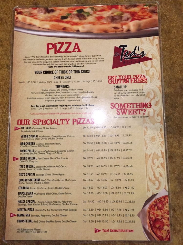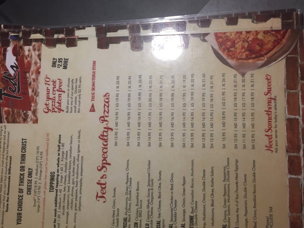 Ted's Pizza Palace Menu